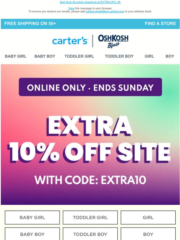 Carter's 25 off coupon in store