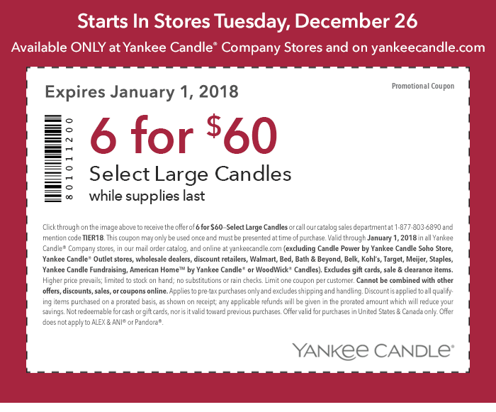 Yankee candle december coupon. Unscented Tea Light Candles - Tea Light Candles | Yankee Candle Nov 15, 2022 · Our Unscented Tea Light Candles create the perfect ambiance for any occasion when paired with our Tea Light Candle holders and accents. They’re also ideal for heating Single Wax Melts or home fragrance oil in our non-electric warmers. Each Unscented Tea Light produces a low, even flame up to six hours; once the wick is nearly gone, the candle self-extinguishes. Bag of 25. Spiced Pumpkin Original Large Jar Candles - Yankee Candle Nov 11, 2022 · Our largest Jar Candle provides over 110 hours of soothing fragrance designed to create a welcoming home for family and friends. The iconic Jar shape is a symbol of our 50-year commitment to creating the world's finest candles. Each is made with premium-grade paraffin and the finest quality ingredients from around the world. And, we select the ideal natural-fiber wick for each fragrance to ... Deals and Sales | CNN Underscored CNN Underscored is your trusted source for the latest daily deals and sales trends, how-to's, and product reviews. Candles, Air Fresheners & Home Fragrance | Yankee Candle Text "PERKS" to 926533 (Yankee Candle®) to receive promotional and marketing messages. 15% discount is one-time use only. Yankee Candle Yankee Candle. Shop By Fragrance;