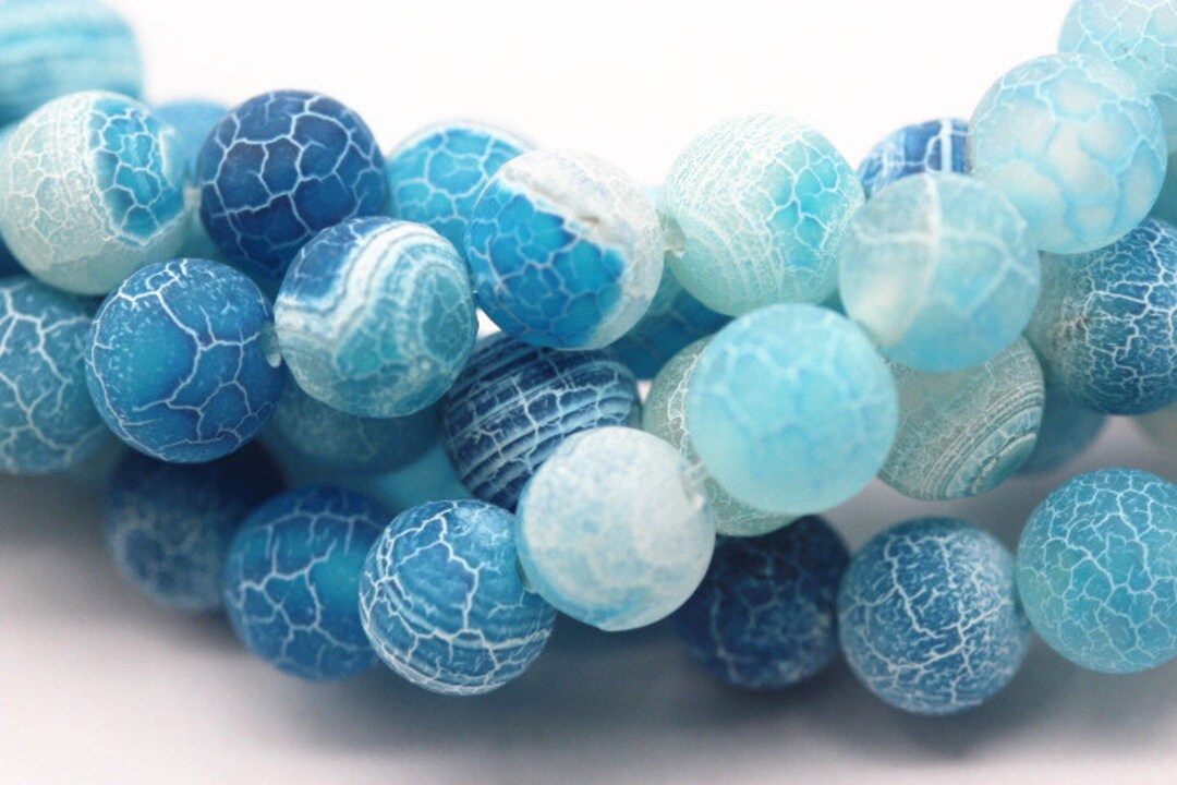 Light Blue Fire Agate Cracked Matte Round Beads 4mm 12mm ...